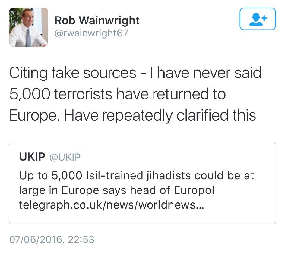 RT @sturdyAlex : Head of Europol @rwainwright67 calls out @Nigel_Farage out again for lying.
