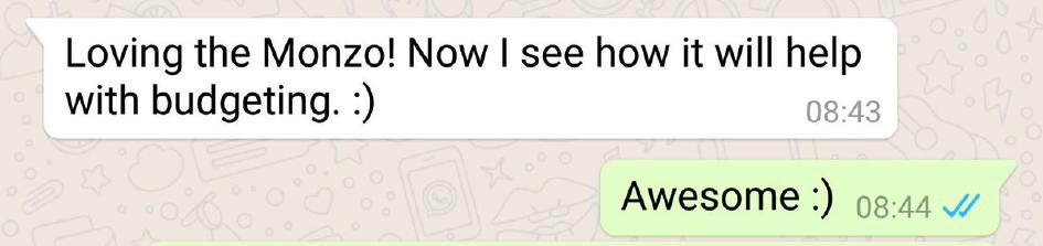 Finally got my wife onto @monzo and she activated her card this morning. Thought I’d share the conversation… 💳 💞